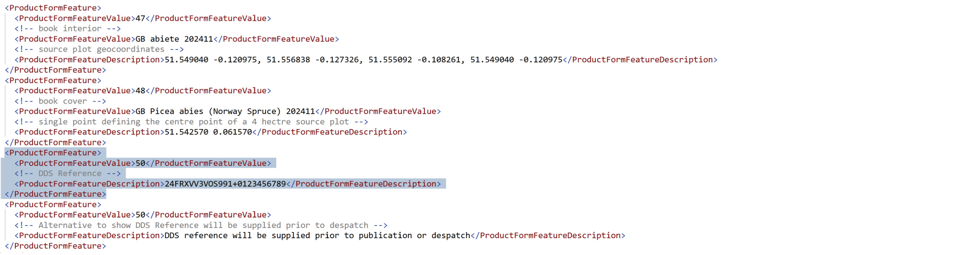If, however, Gardners are going to generate the source DDS, the two entries above that show how the geocoordinates and tree species might be described for each type of paper (two in this case) used within the book.